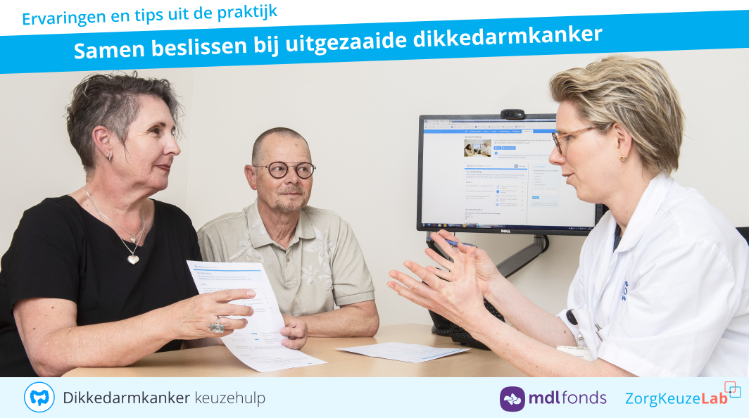 De Dikkedarmkanker keuzehulp, ontwikkeld door ZorgKeuzeLab in samenwerking met medisch specialisten, patiënten en de MDL Fonds, ondersteunt mensen met uitgezaaide dikkedarm- of endeldarmkanker bij één van de moeilijkste beslissingen in hun leven.