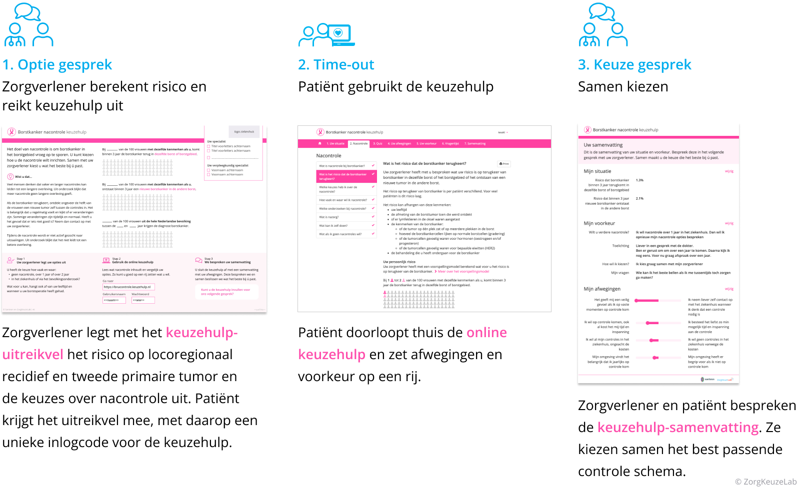 Samen met patiënten en zorgverleners heeft het NABOR-projectteam – de Borstkanker nazorg keuzehulp ontwikkeld, met ZorgKeuzeLab als ontwikkel- en implementatiepartner.