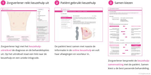 De keuzehulp wordt door zorgverleners aangeboden als vast onderdeel van het zorgtraject. De patiënt krijgt zo op het juiste moment de juiste informatie en er is ruimte om samen te beslissen.