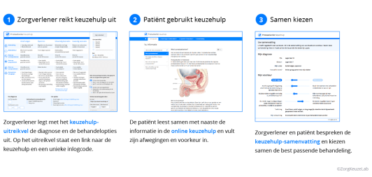 De keuzehulpen worden in samenwerking met ZorgKeuzeLab ontwikkeld. Regina The, directeur van ZorgKeuzeLab: “We ontwikkelen al langer keuzehulpen, altijd samen met wetenschappelijke verenigingen en patiëntenverenigingen zodat ze opschaalbaar zijn naar alle Nederlandse ziekenhuizen. Uiteraard werken we daarbij volgens de landelijke leidraad. Door de keuzehulpen te verrijken met zorguitkomsten en persoonlijke risico-informatie zetten we een serieuze stap in de ontwikkeling van keuzehulpen ter ondersteuning van samen beslissen.“