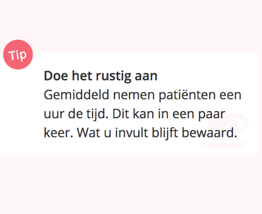 Een patiënt gaf ons ook deze feedback: “Iets beter aangeven of je kan opslaan of later nog terug kan om de vragen in te vullen.” Dit hebben we ook meegenomen in deze tip.